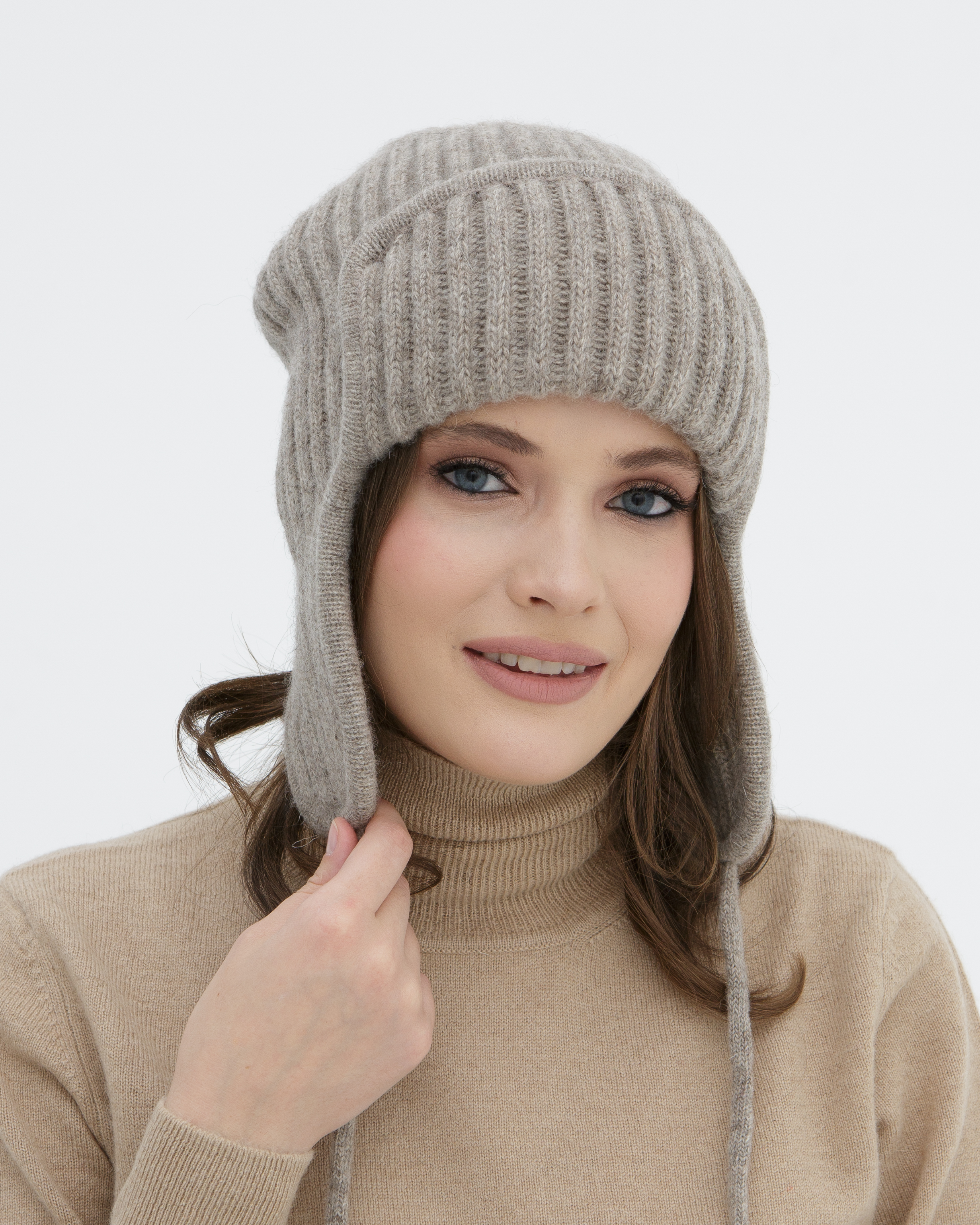 Классическая ушанка с удлинёнными боковыми частями и завязками.