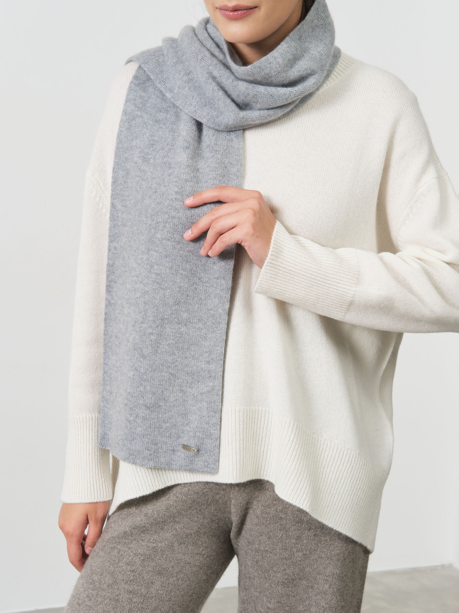 Шарф из кашемира 03034 серо-голубой
