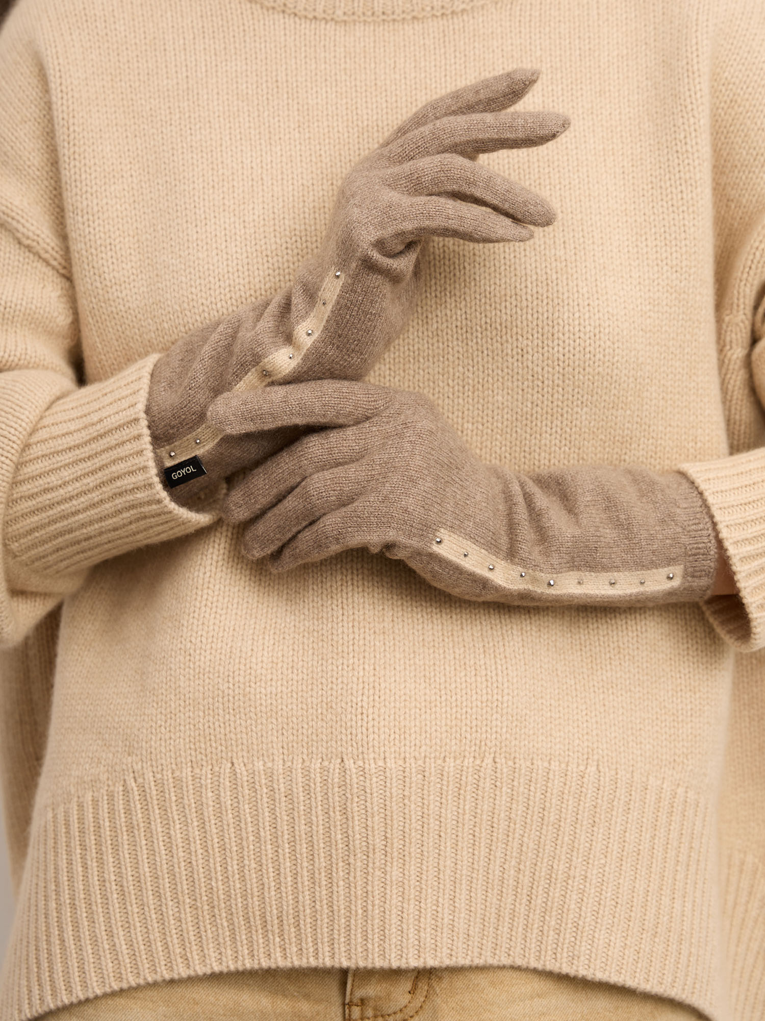 Утончённые перчатки из 100% монгольского кашемира в мягком оттенке капучино — это сочетание комфорта, тепла и элегантности. Нежная фактура кашемира дарит приятные ощущения при прикосновении, а естественный цвет подчёркивает изысканность и гармонию образа.