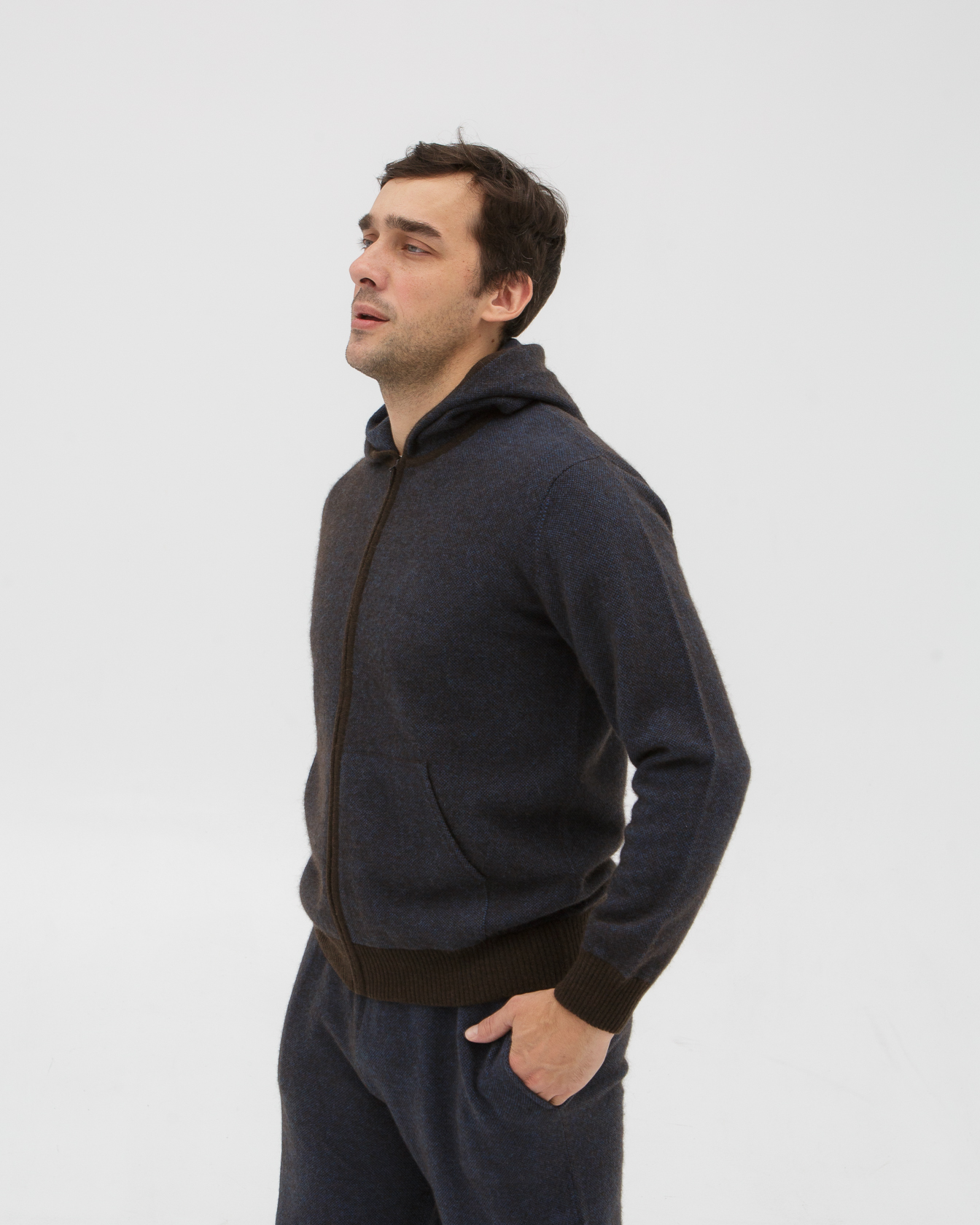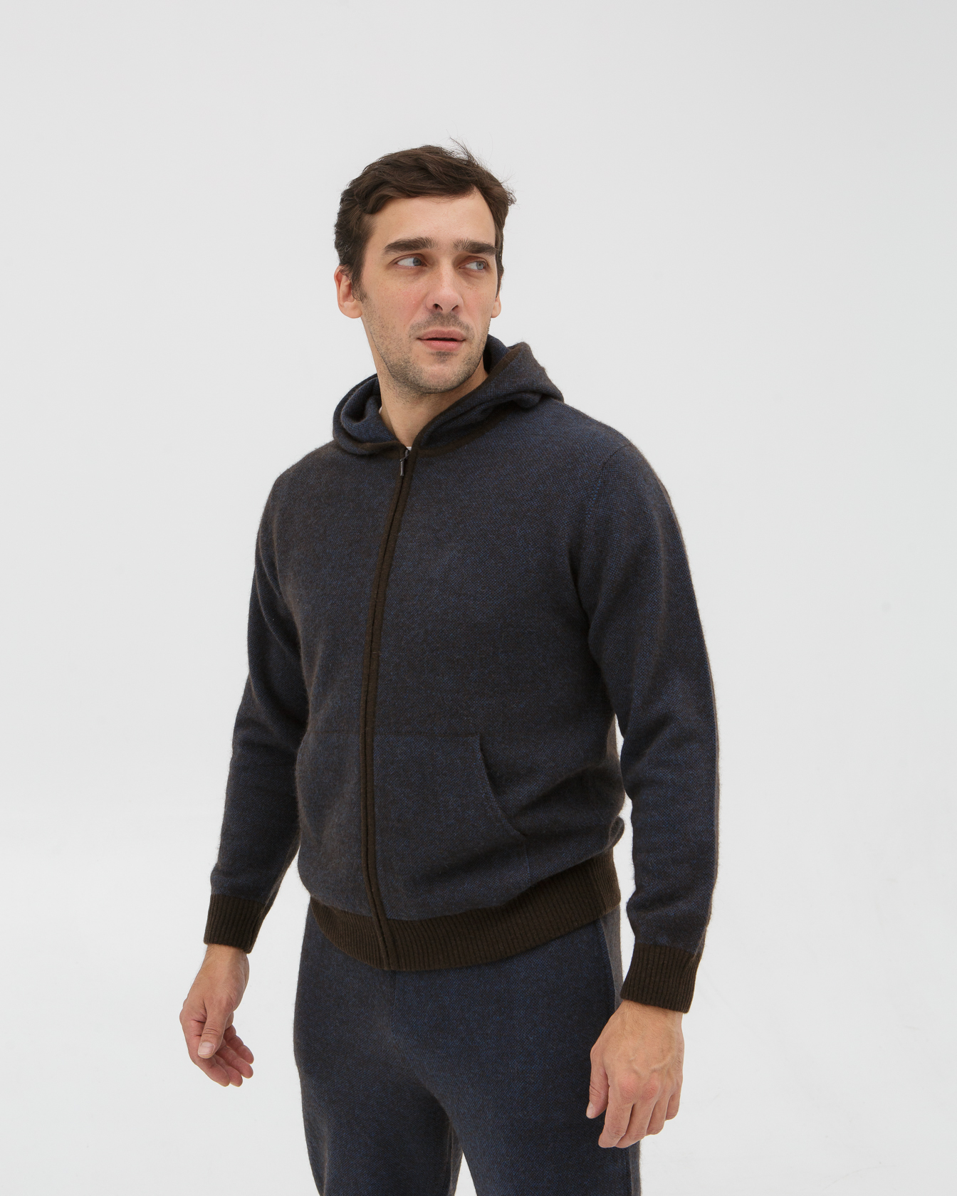 Джемпер из пуха яка и верблюда с капюшоном 4179 синий