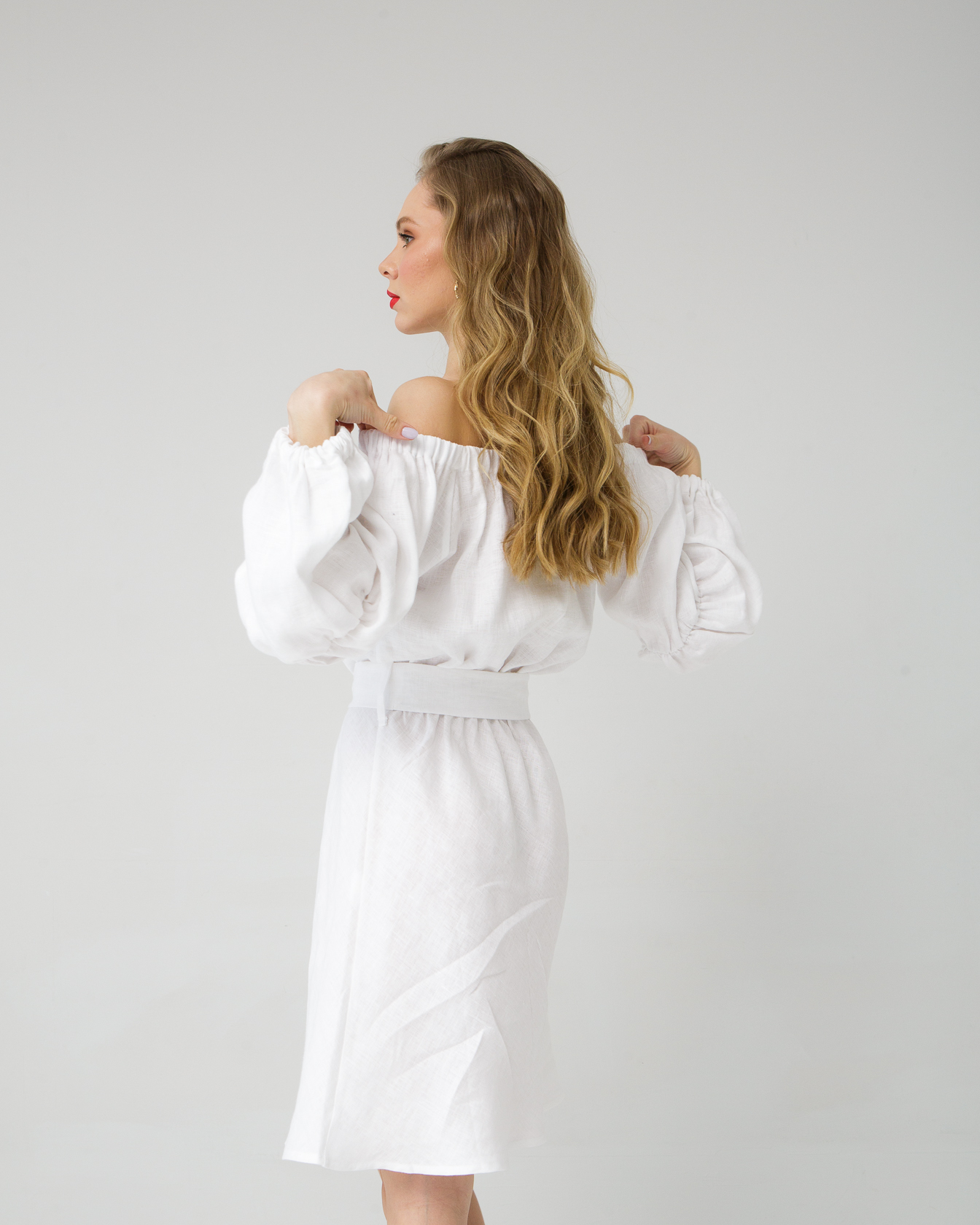 Женское льняное платье белого цвета — легкая и романтичная модель, идеально подходящая для летнего гардероба. Воздушный силуэт и натуральная ткань создают ощущение свободы и комфорта, а открытая линия плеч добавляет образу женственности и утонченности. Платье прекрасно подойдет для отдыха, прогулок и особых летних моментов.