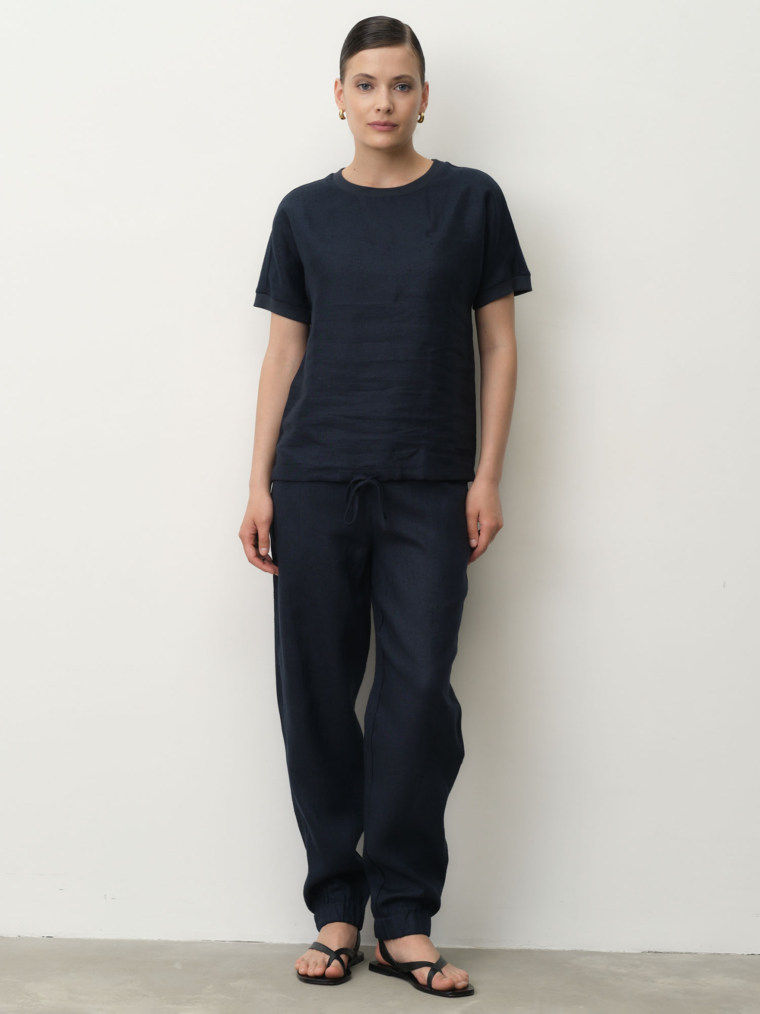 100% лен — натуральный дышащий материал, обеспечивающий комфорт в жаркую погоду. Отличается прочностью и приятной фактурой.