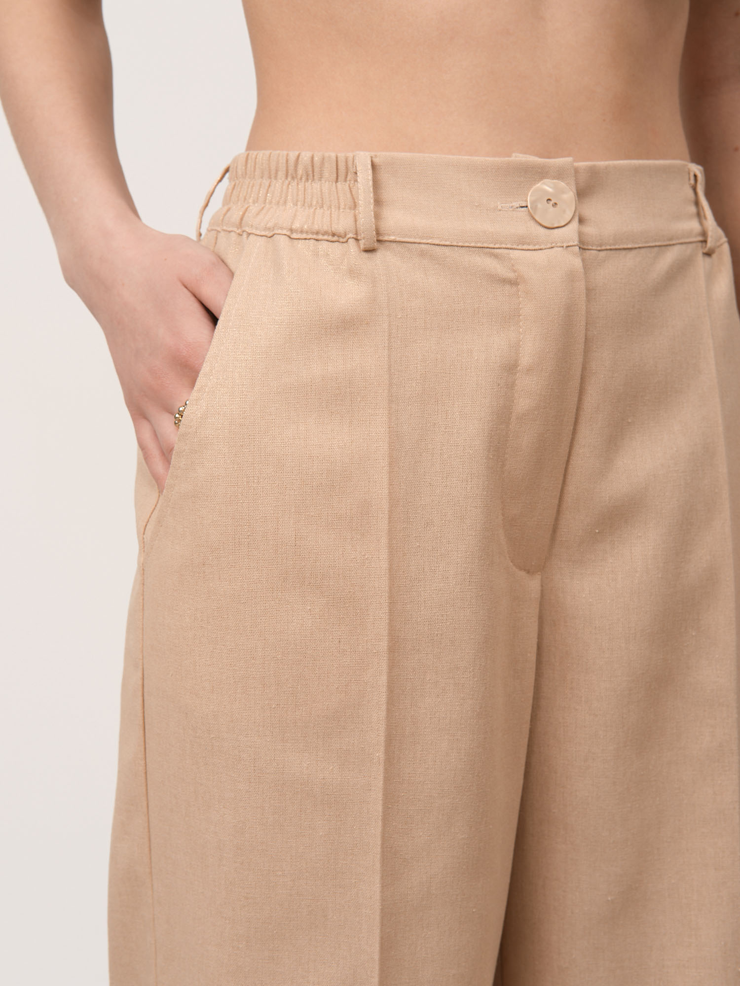 Шикарный золотистый оттенок! Брюки из натурального льна, очень легкие и комфортные. Ткань приятная на ощупь, не раздражает кожу.