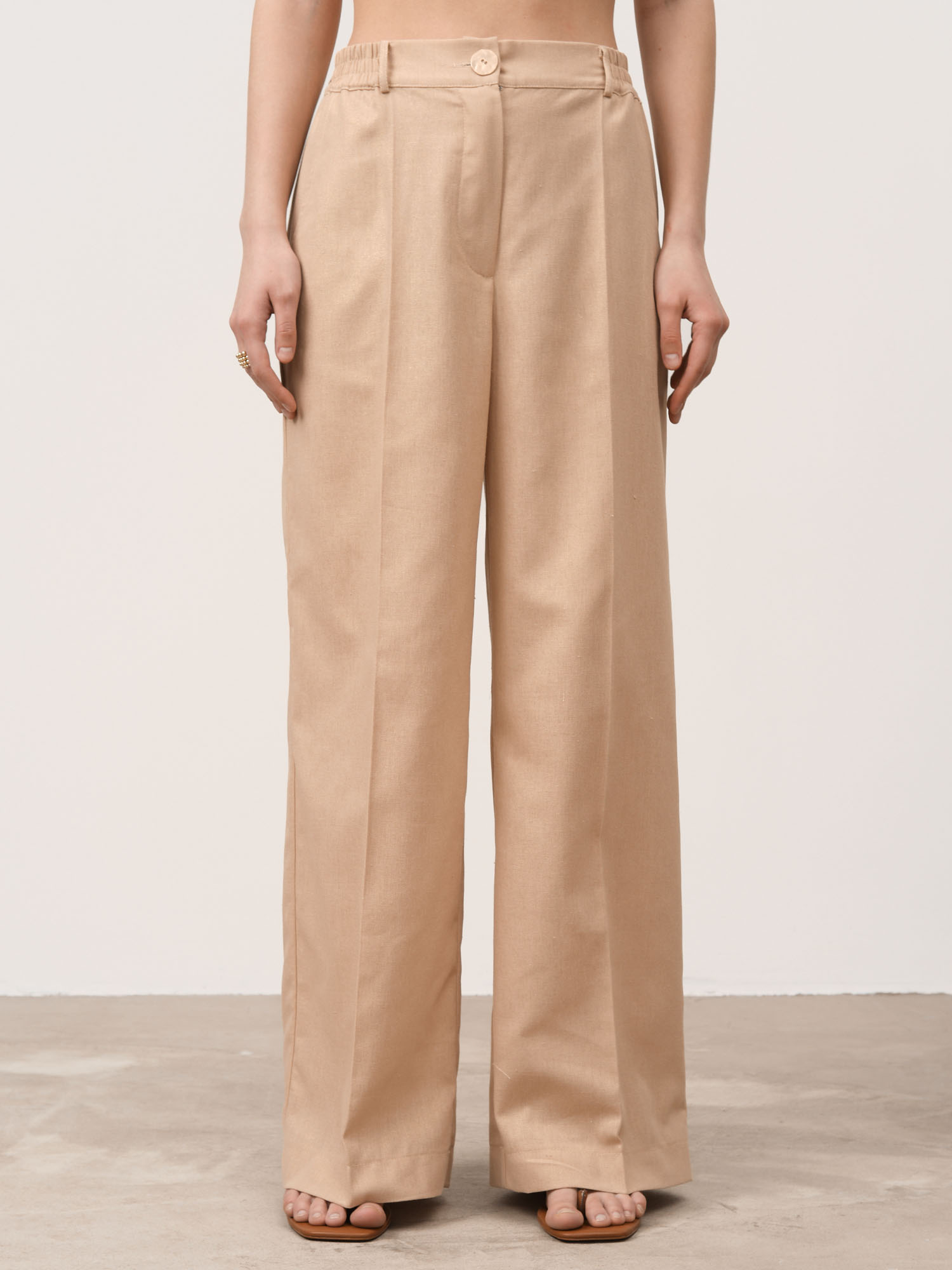 Женские брюки из льна — элегантная модель с прямым силуэтом, сочетающая комфорт и актуальный минимализм. Отлично подходят для создания легких и стильных образов в теплый сезон.