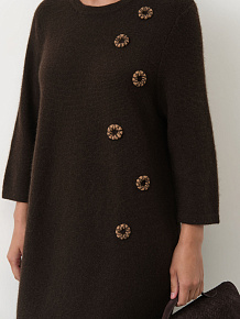 Цвет платья изумительный. Мой рост 165, ношу 44 российский. Взяла размер М. Село великолепно, даже скрывает мелкие недостатки... Пух яка очень мягкий, к телу очень приятный. Напомнил мне итальянский кашемир. |