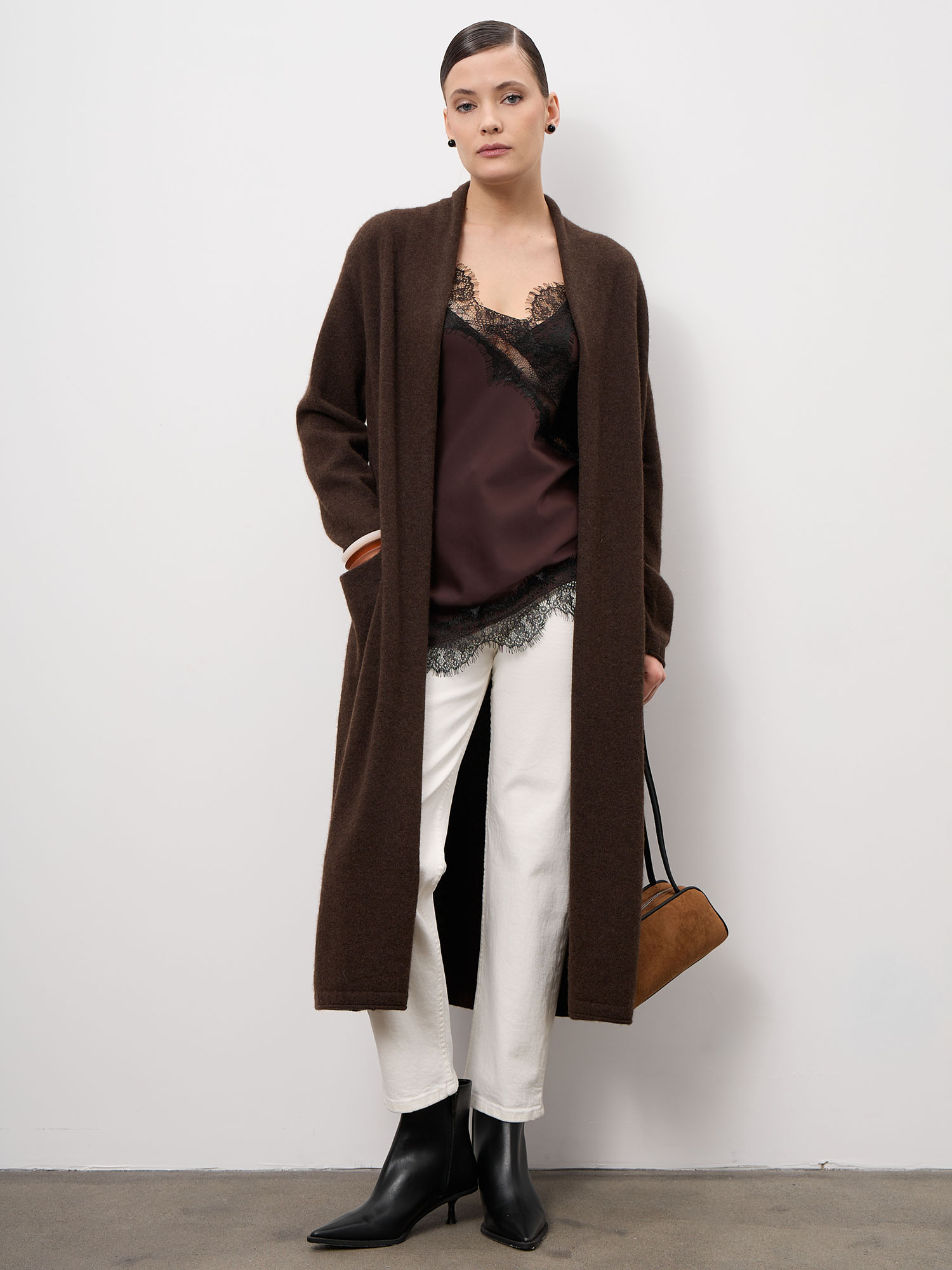 Элегантный удлинённый кардиган из пуха яка — универсальная модель для холодного сезона. Благородная фактура и мягкий силуэт подчёркивают утончённый стиль и создают ощущение уюта и комфорта в повседневных и многослойных образах.