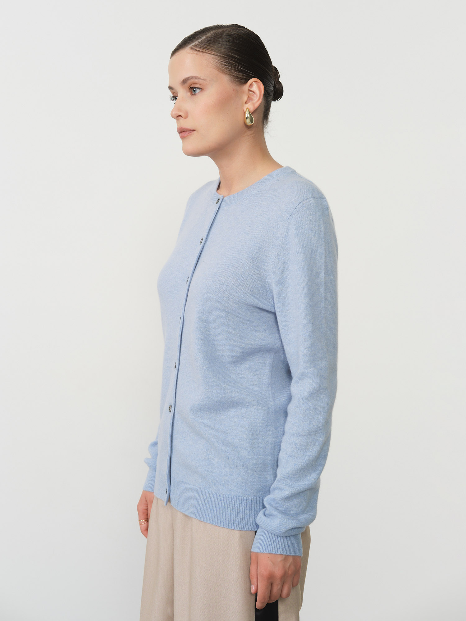 Голубой оттенок освежает образ и легко комбинируется как с нейтральными цветами для делового стиля, так и с яркими акцентами для повседневных луков. Кардиган станет идеальным дополнением к платьям, юбкам, джинсам или классическим брюкам.